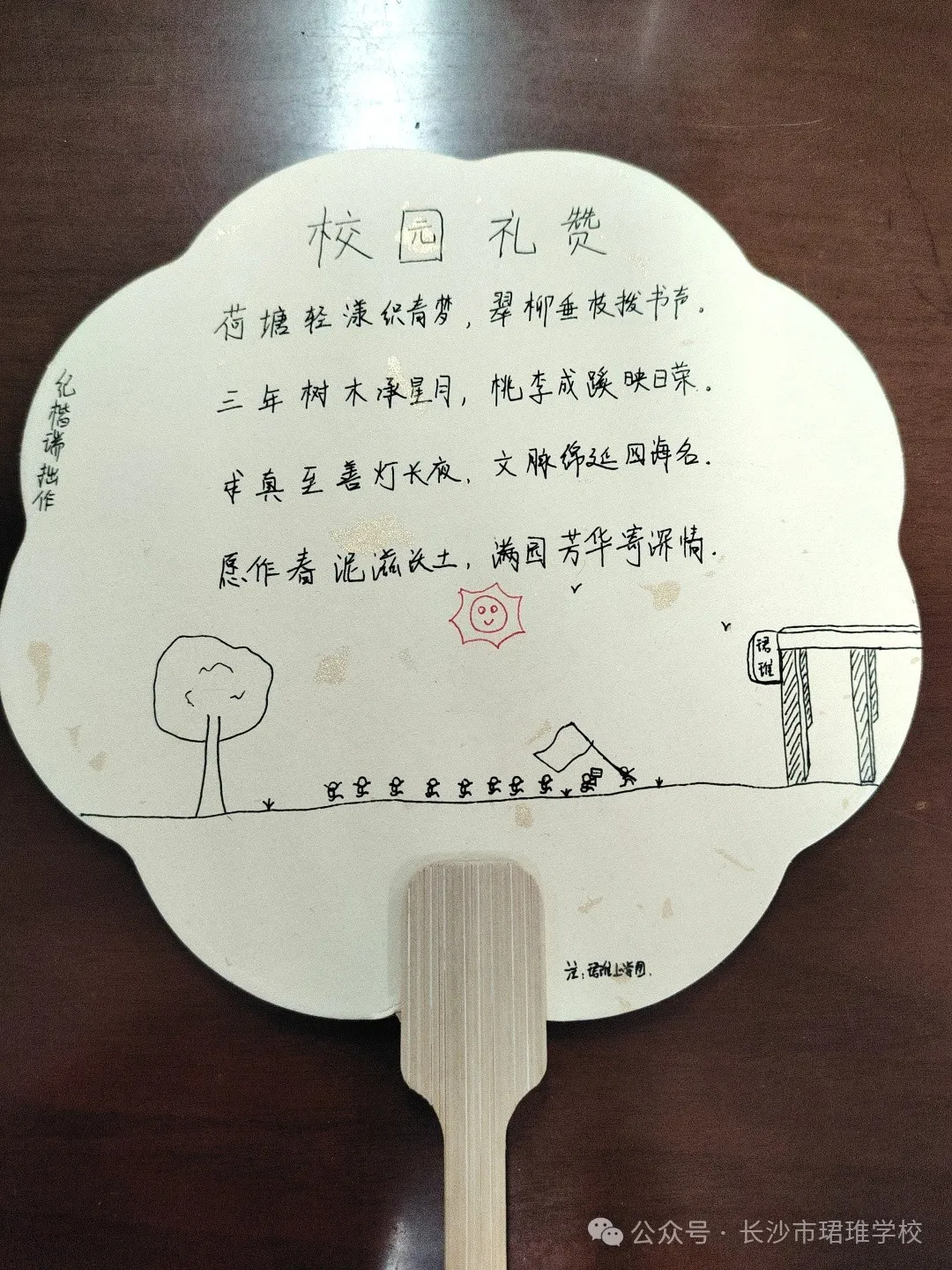 回首这场跨界相逢:AI不再是冰冷的工具,而是解构诗律的知己;画扇不独为风雅载体,更成链接古今的信物。在AI生成的意象森林里采撷灵感,于画扇上晕染亲手书写的春色,每一步都是“乐学”精神的生动诠释。看,算法解析古诗的平仄韵律,却激发出更鲜活的创作热情;听,智能语音吟诵经典,却唤醒了血脉里的文化共鸣——当传统遇见创新,当知识碰撞乐趣,每一帧皆是“乐学乐教,幸福校园”的鲜活图景。