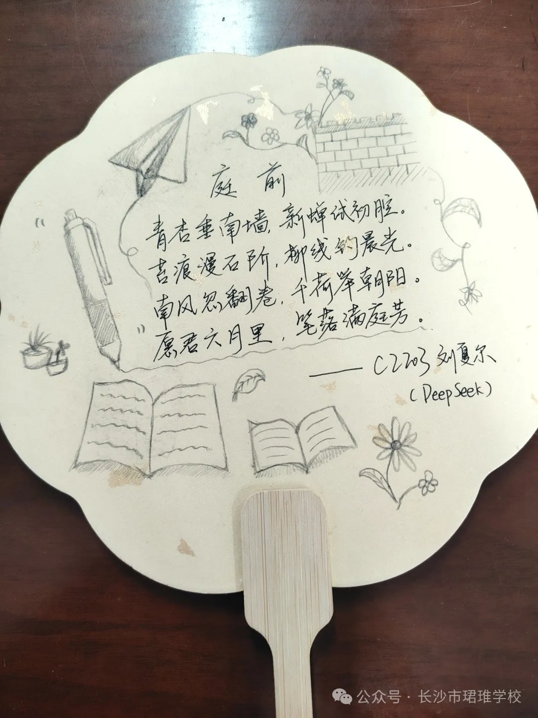 活动虽落幕,但AI生成的每一句诗,都是珺琟写给春天的明信片;珺琟少年挥毫的每一笔墨,皆成时光胶囊里的人文密码。我们终将明白:语文的边界在技术赋能下温柔延展,而“乐学”的真谛,正是以好奇为火种,点燃传统与未来对话的长灯。此去经年,愿那把载满诗画的素扇,不止收纳过一季春光,更在风中舒展成珺琟少年走向世界的翅膀。