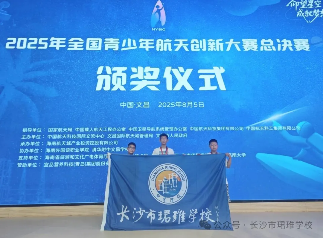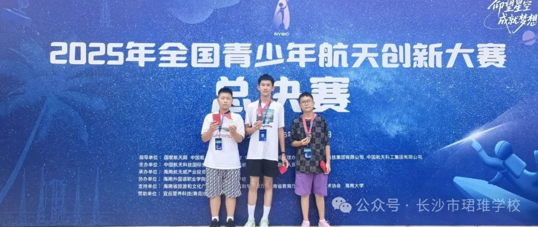 热烈祝贺!日前,在海南文昌举行的2025年全国青少年航天创新大赛(教育部白名单赛事)全国总决赛中,我校学子奋勇拼搏,斩获二银一铜的优异成绩!更令人振奋的是,湖南省初中省队一共仅7人入选,参加全国总决赛,其中3人来自我校,充分展现了我校在科技创新教育方面的卓越实力!