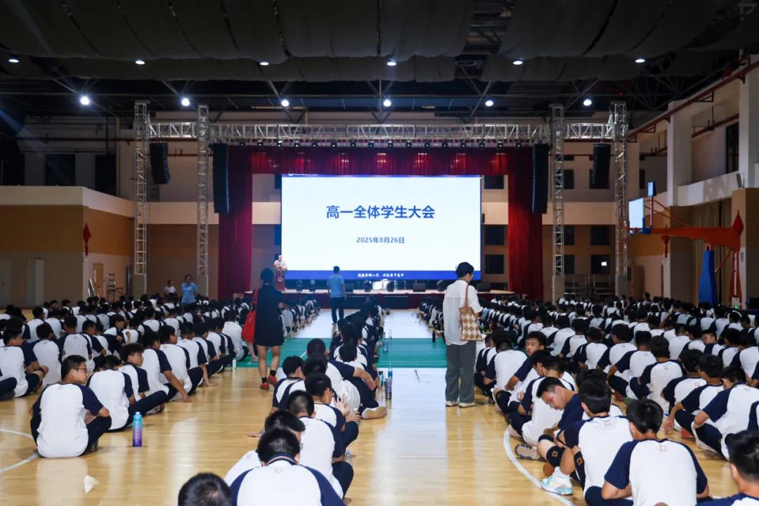 没有规矩,不成方圆。为了加强日常管理、规范学生行为习惯、营造良好的学习氛围,8月26日晚,高一年级全体学生大会在体育馆举行。