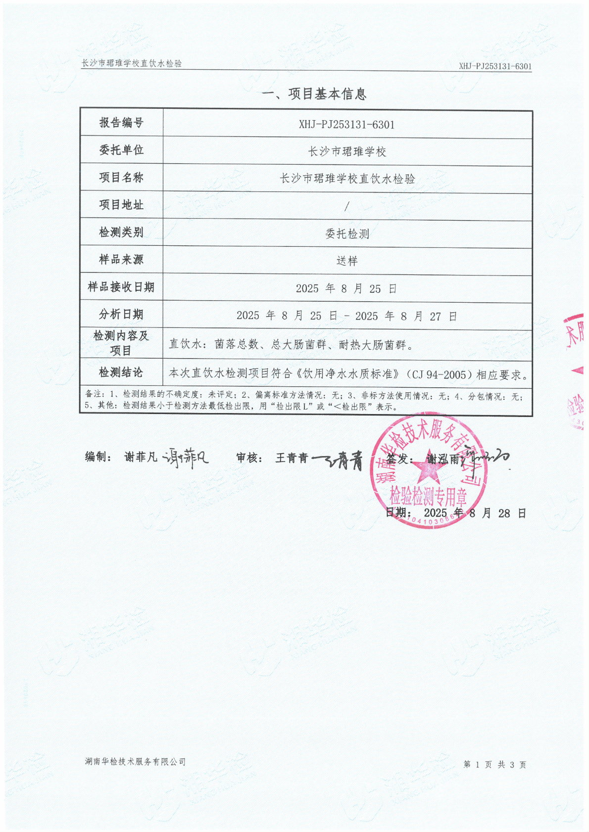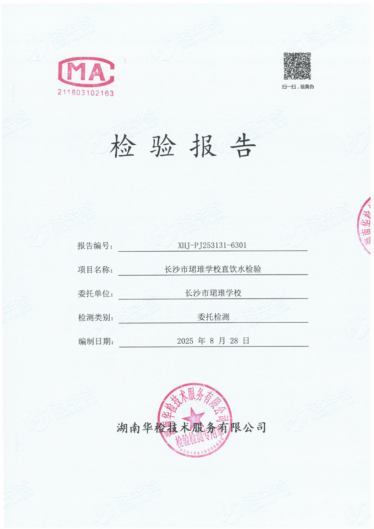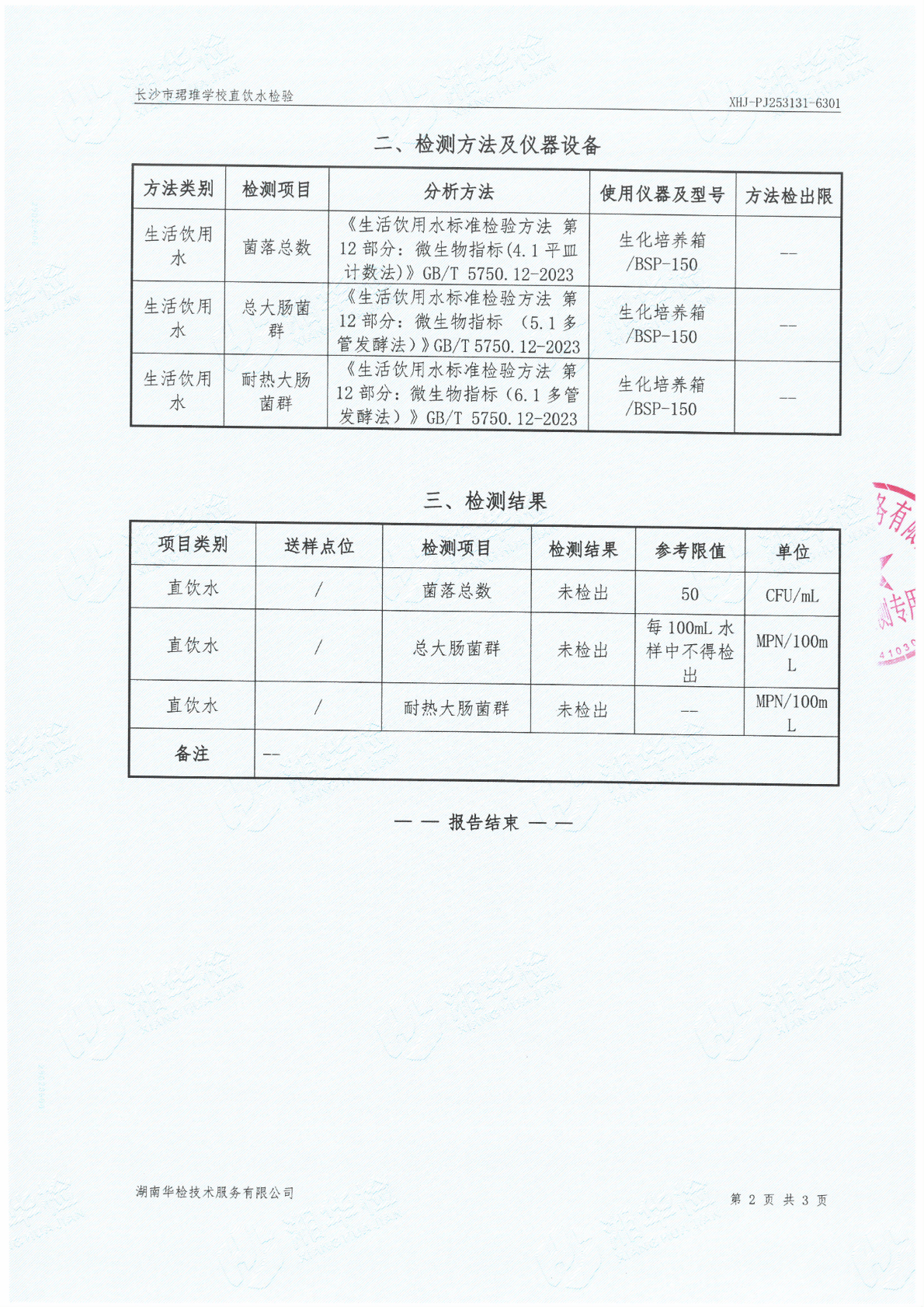珺琟学校直饮水检验报告
