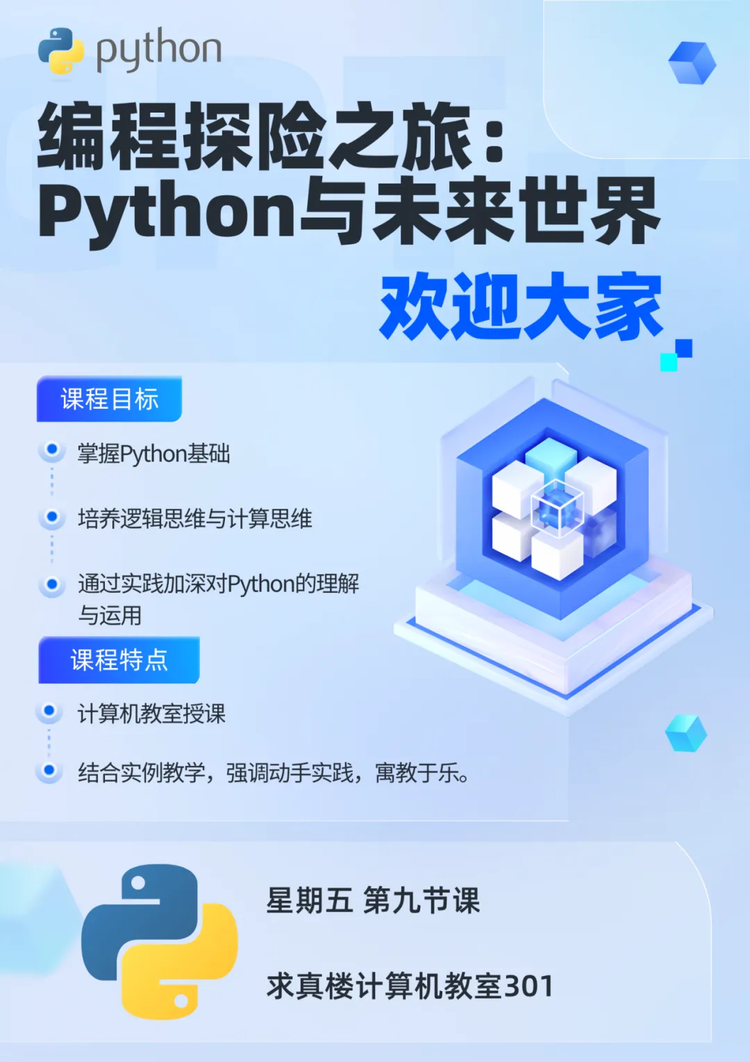 课程内容循序渐进,从易到难拆解知识;理论与实践结合,通过趣味案例和实操项目让学生快速上手;注重互动交流,以小组合作、课堂讨论激发创意,助力同学们轻松开启Python编程学习