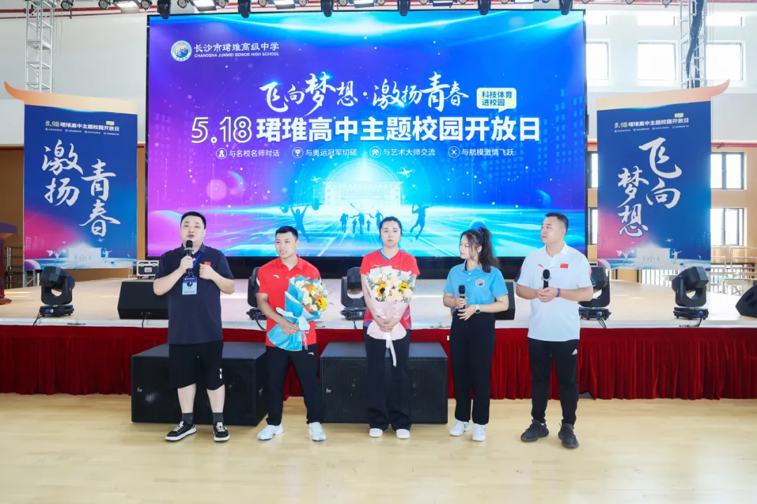 ▲奥运冠军谌利军、田卿莅临我校“科技体育进校园”主题开放日活动